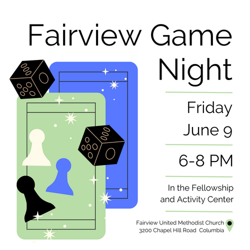 Join other Fairview folks for a fun night of games in the Fellowship and Activity Center (the gym). This is a low-key event focusing on fun, relationship building, and of course, your favorite game. Bring your own board game or card game or just show up and see what new game you can learn or old favorite you can play with a new friend! This will be Friday, June 9th from 6-8 PM.