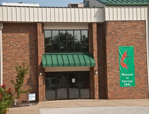 a lower parking lot to the West with quick access to the Fellowship and Activity Center, church kitchen, and playground.